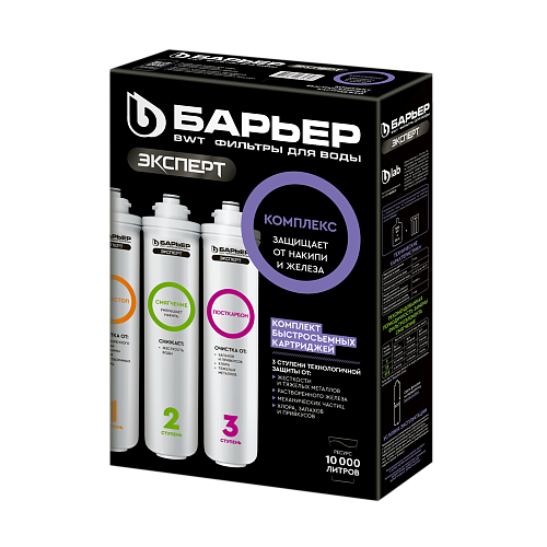 Сменный картридж БАРЬЕР ЭКСПЕРТ Смягчение подходит к любой проточной системе БАРЬЕР ЭКСПЕРТ, БАРЬЕР ЭКСПЕРТ СЛИМ, а также БАРЬЕР АКТИВ. Заменяется удобно, одним движением, без специальных ключей, инструментов и навыков.